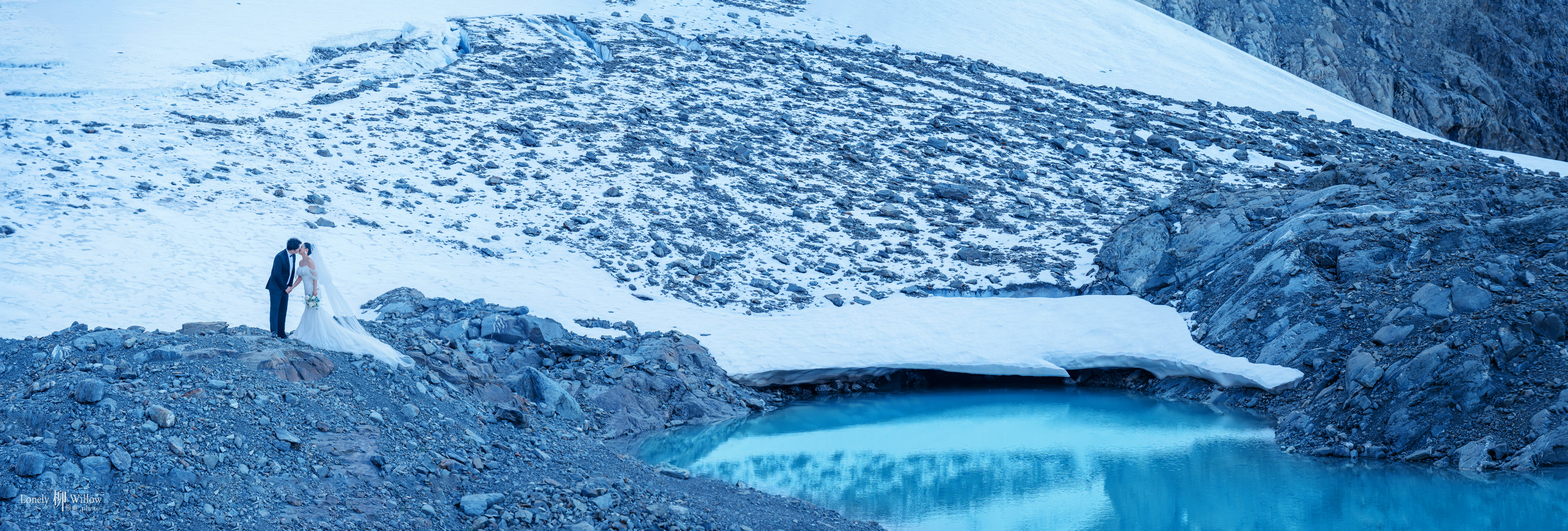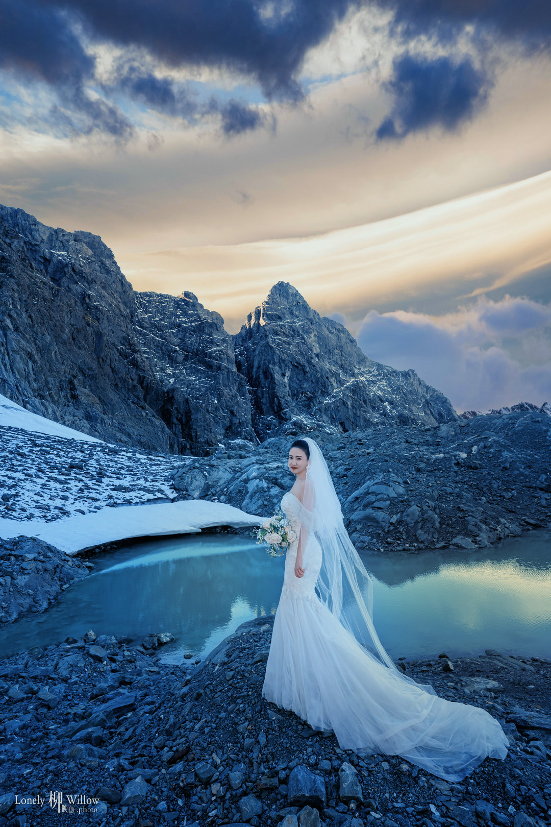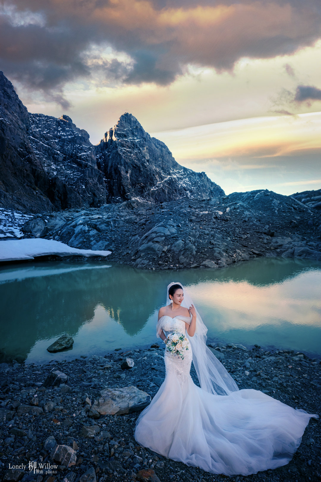 Twilight的高山冰湖