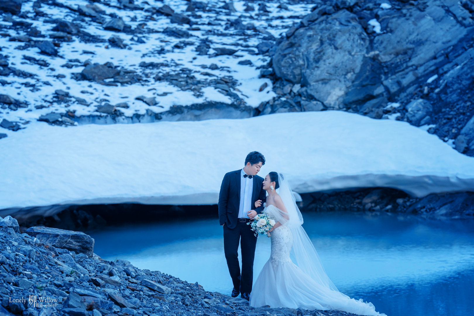Twilight的高山冰湖